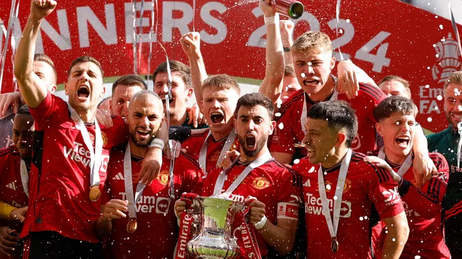 Lifting the FA Cup for the first time since the reign of another Dutch coach, Louis van Gaal, goals from academy stars, Alejandro Garnacho and Kobbie Mainoo guided Man United to a 2-1 win at Wembley – with Belgian winger, Jeremy Doku scoring what transpired to be a consolation for Pep Guardiola’s side.